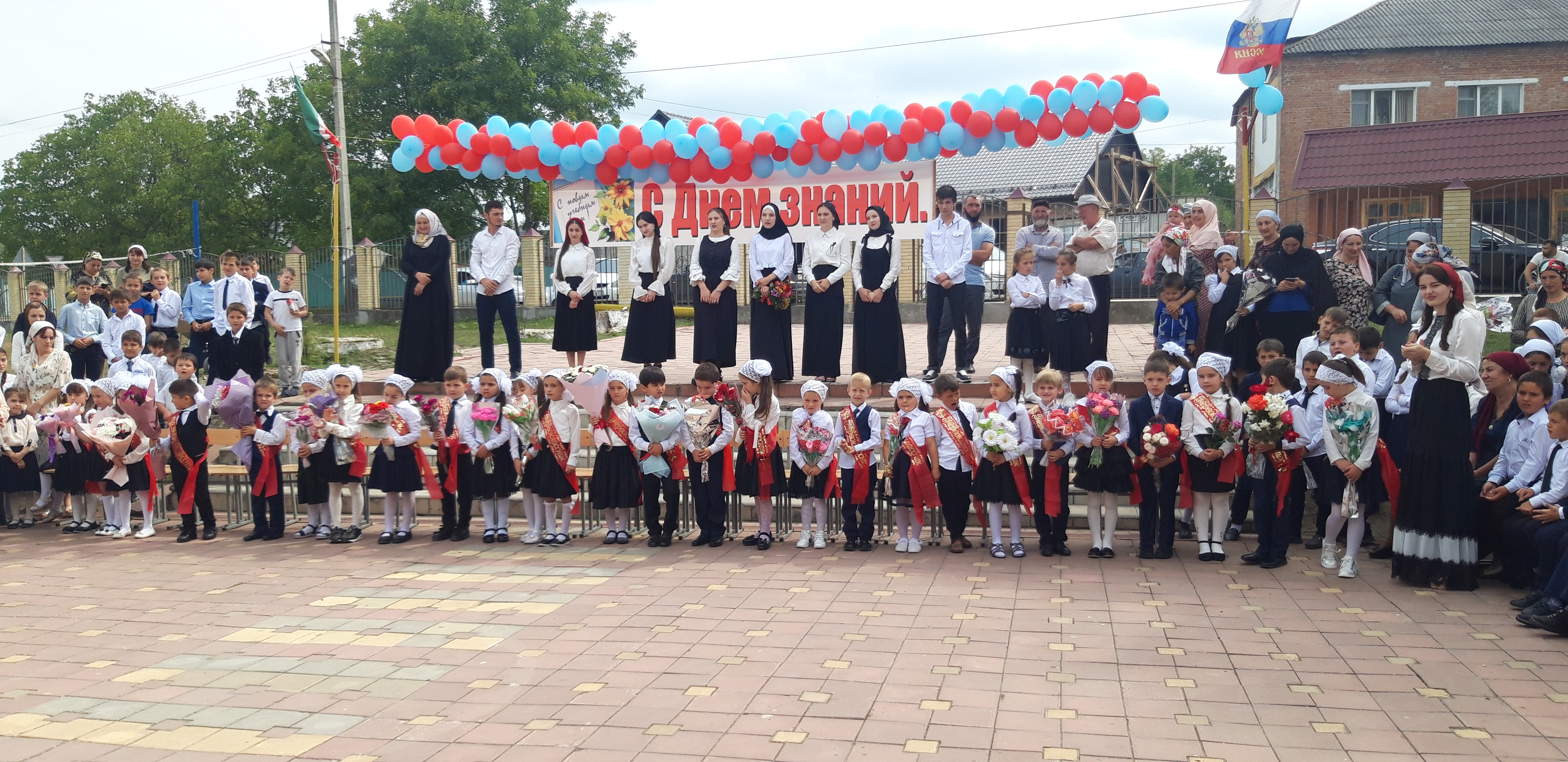 На торжественную линейку были приглашены учащиеся и родители. Явка учащихся была хорошей – 250 учащихся. Присутствовали гости: Глава администрации - Зумаев Х, имам мечети-Газимагомаев И.
