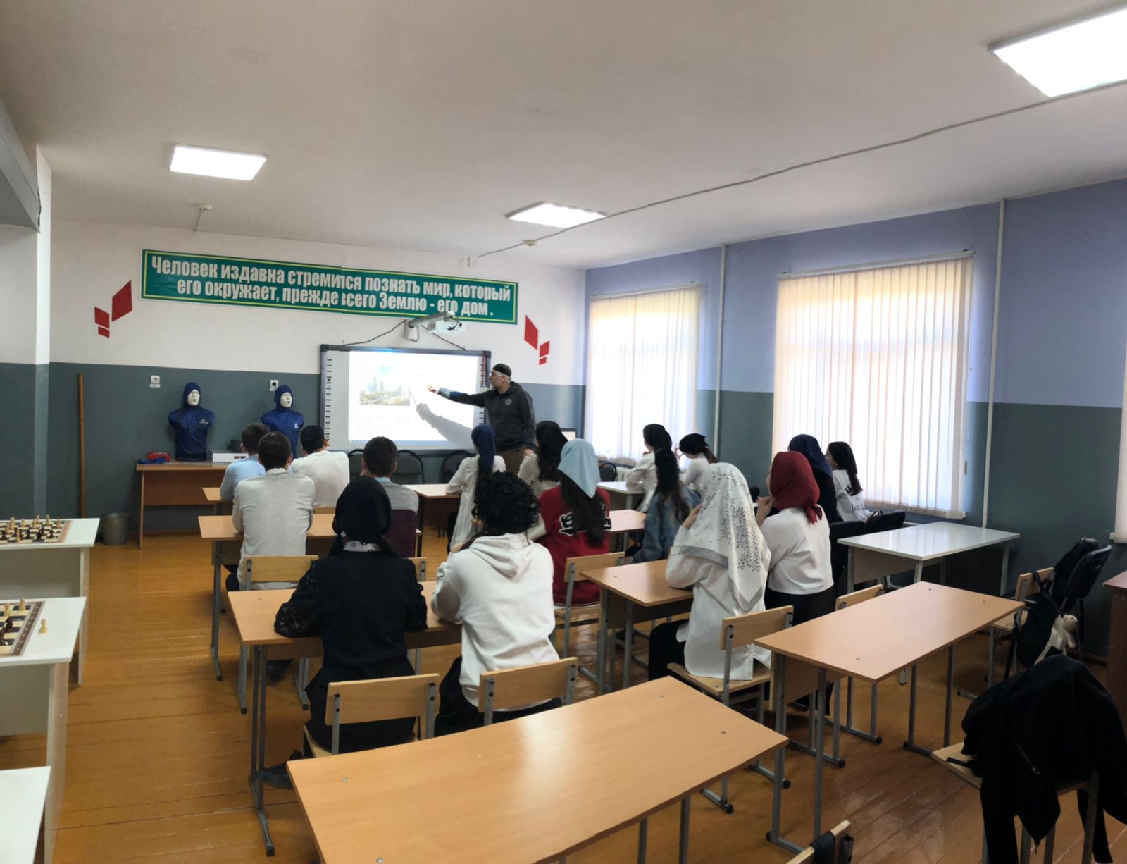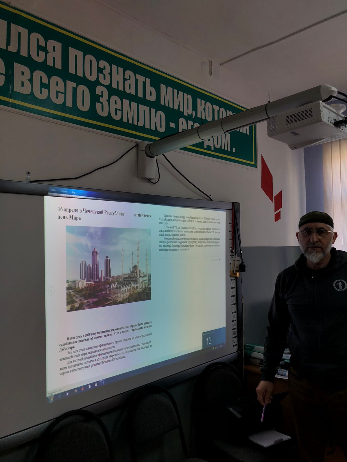 14.04.2022 г. Юнармейским отрядом "вымпел" проведена интерактивная беседа с учащимися МБОУ "Тевзанинская СОШ им. С.С. Зумаева" ко Дню Мира в Чеченской Республике