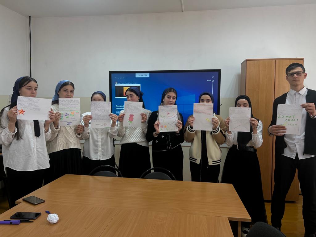 Сегодня учащиеся МБОУ "Тевзанинская СОШ им. С.С. Зумаева" приняли участие во Общероссийской акциив рамках которого учащиеся школы писали письма нашим военнослужащим, которые участвуют в спецоперации на Украине