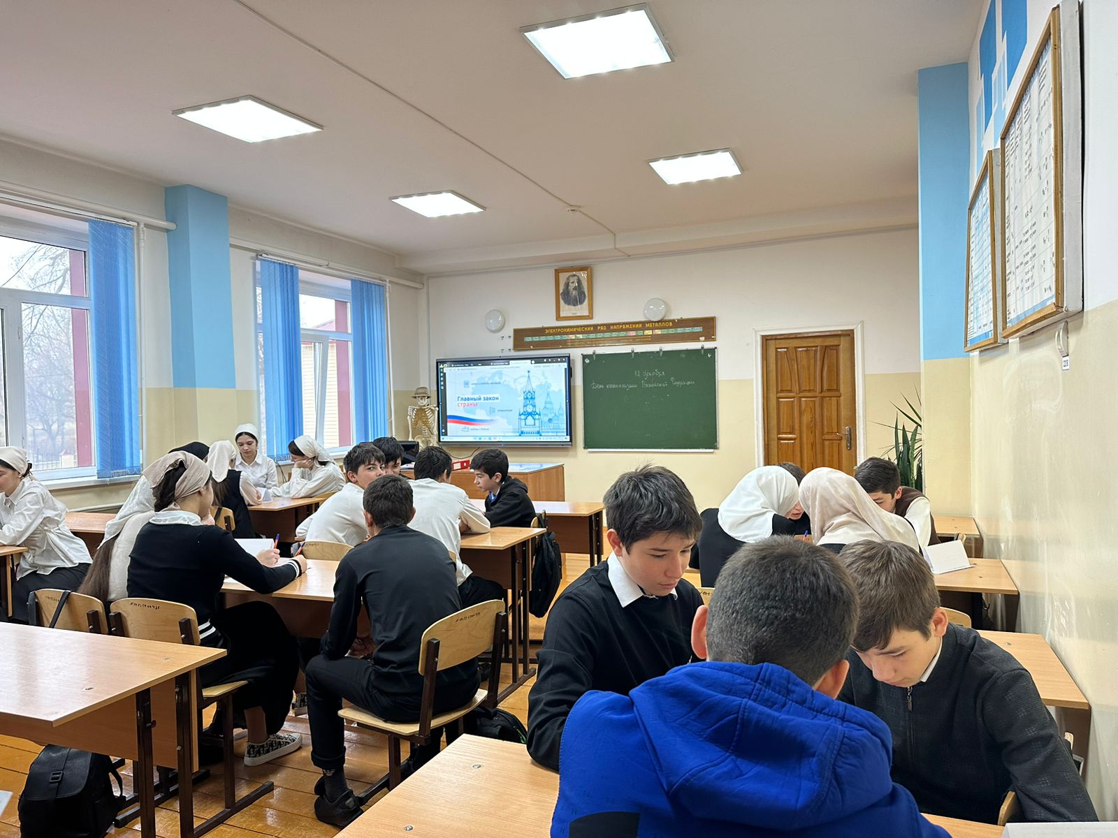 Также в школе провели единый классный час где детям поведали об истории Конституции РФ, в частности было отмечено, что она была принята всенародным голосованием 12 декабря 1993 года. Этот исторический документ стал фундаментальным для развития правового государства и демократии в России.